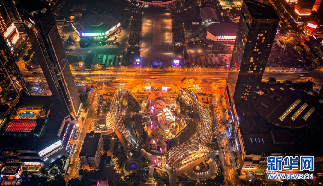 從高空俯瞰夜色中的珠江新城,現(xiàn)代化高樓林立,燈光璀璨。新華網(wǎng)發(fā) (伍定文 攝)