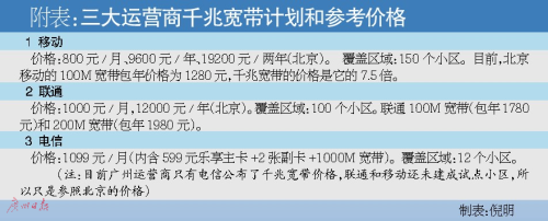 廣州日?qǐng)?bào)記者調(diào)查后發(fā)現(xiàn),千兆寬帶普及還需時(shí)日。首先,千兆寬帶仍處于推廣初期,覆蓋范圍有限且費(fèi)用較高(見附表)。其次,享受千兆寬帶的服務(wù),必須用戶升級(jí)家中的相關(guān)硬件,如光貓、路由器、網(wǎng)線和網(wǎng)卡等。