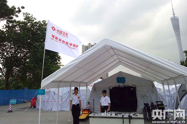 在廣州珠江南畔石榴崗一片空地上,50多頂印著中國(guó)衛(wèi)生的帳篷有規(guī)律排列起來(lái),主要的帳篷互相聯(lián)通。