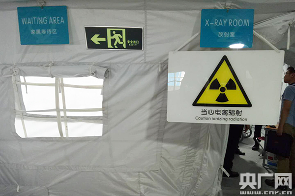 一旦患者到達(dá)這家?guī)づ襻t(yī)院,不用擔(dān)心吹風(fēng)淋雨,更關(guān)鍵的是,里面有便攜式空調(diào),非常涼快,一點(diǎn)都不熱。在中間的帳篷里分設(shè)了分診臺(tái)、急救室、內(nèi)科兒科、心電B超、婦產(chǎn)科、放射室、藥房、手術(shù)室、手術(shù)準(zhǔn)備區(qū)、復(fù)蘇室、病房、滅菌消毒室、指揮工作室等等功能區(qū)。散布在周邊的帳篷包括了隔離病房、廁所、醫(yī)療廢物區(qū)、餐廳、住宿帳篷等。