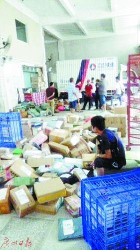 快遞點(diǎn)快件堆積如山。 廣州日報(bào)全媒體記者高鶴濤 攝
