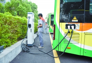 充電中的電動公交車。廣報記者駱昌威攝(資料圖片)