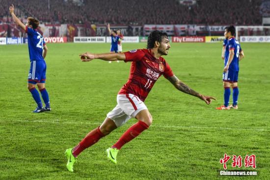 資料圖:5月9日晚,2017賽季亞冠聯(lián)賽小組賽末輪,廣州恒大憑借高拉特的兩粒進(jìn)球,主場(chǎng)2比2戰(zhàn)平韓國(guó)球隊(duì)水原三星,從小組出線。中新社記者 陳驥旻 攝