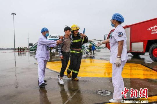 中新網(wǎng)廣州11月8日電 (記者 郭軍) 警燈閃爍、笛聲長鳴,消防車、急救車、警車等各種保障車輛全部出動……11月8日,廣州白云機(jī)場聯(lián)合南方航空及相關(guān)駐場單位在二號航站樓站坪268機(jī)位舉行了一次航空器突發(fā)事件應(yīng)急救援聯(lián)合演練。這是該機(jī)場近年來規(guī)模最大、層次最高、參演單位最多、影響最廣的實(shí)景推進(jìn)聯(lián)合演練,涵蓋航空器空中故障應(yīng)急救援及后續(xù)處置的所有科目。
