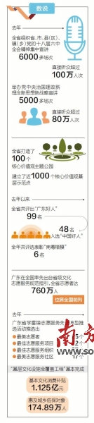 去年以來,全省共評出“廣東好人”99名,其中48名入選“中國好人”。全年共評選表彰6名“南粵楷!。全國道德模范李玉枝家庭等13戶廣東家庭被授予第一屆全國文明家庭榮譽稱號。