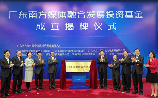2016年3月27日,總規(guī)模百億元的廣東省首支媒體融合投資基金——廣東南方媒體融合發(fā)展投資基金在廣州成立。廣東省委常委、宣傳部部長慎海雄出席儀式并為基金揭牌。