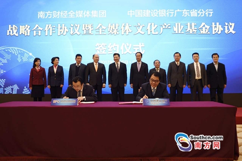 2017年1月15日,南方財經(jīng)全媒體集團與中國建設銀行廣東省分行在廣州簽訂戰(zhàn)略合作協(xié)議。
