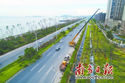 25日下午,經(jīng)過(guò)緊急清理,珠海金灣區(qū)機(jī)場(chǎng)路上大部分倒下的樹木已被清理,交通恢復(fù)如常。關(guān)銘榮 攝