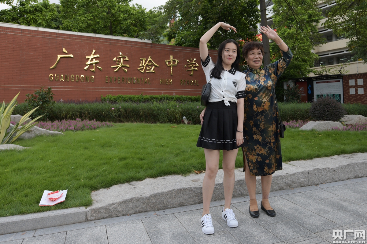 在進(jìn)入考場前,考生與家長在鏡頭前比心。(央廣網(wǎng)記者 官文清攝)