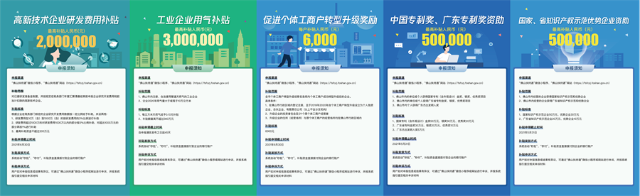 據(jù)了解,本次惠企補貼包含高新技術(shù)企業(yè)研發(fā)費用補貼、工業(yè)企業(yè)用氣補貼、促進(jìn)個體工商戶轉(zhuǎn)型升級補貼、中國專利獎、廣東專利獎資助以及國家、省知識產(chǎn)權(quán)示范優(yōu)勢企業(yè)資助,符合要求的企業(yè)只需登錄“佛山扶持通”,即可申領(lǐng)最高可達(dá)300萬元的補貼資金。