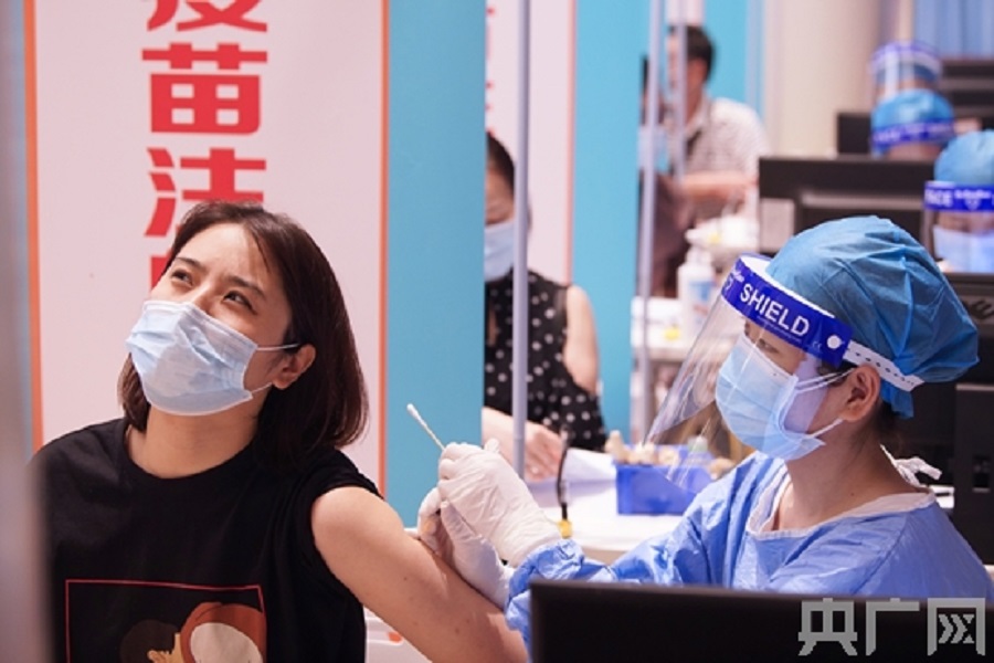 居民在接種新冠疫苗。(央廣網(wǎng)記者 官文清 攝)