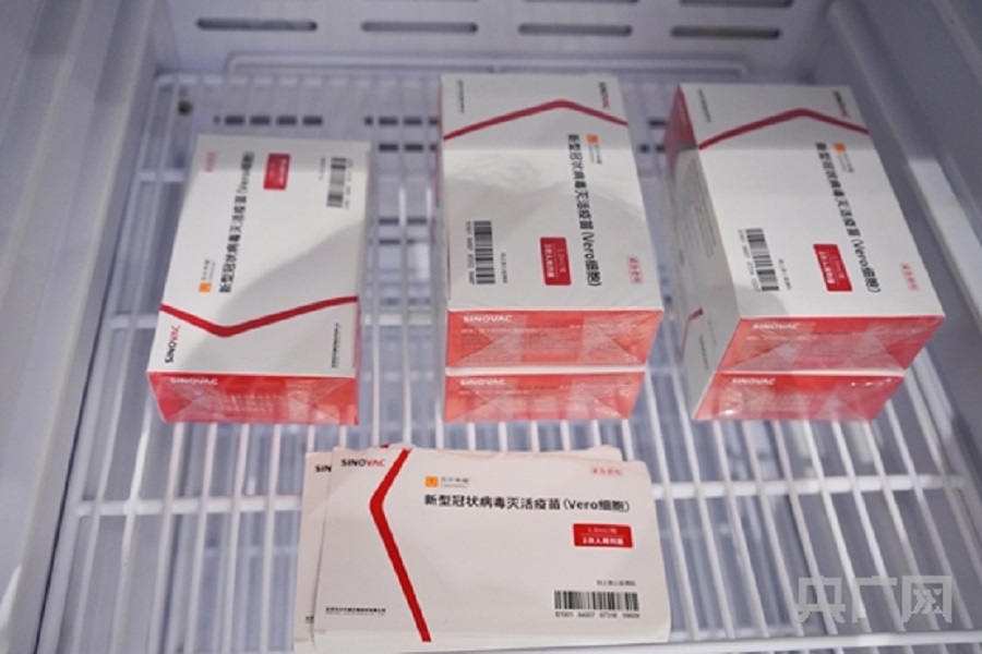 醫(yī)用冷藏箱內(nèi)存放的新冠疫苗。(央廣網(wǎng)記者 官文清 攝)
