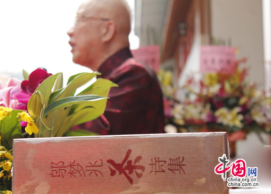 現(xiàn)在,茶樓已經(jīng)成為廣州地方文化的一個重要標識,茶坊、茶藝館、茶葉罐遍布羊城大街小巷。鄔老說,過去說開門七件事是柴米油鹽醬醋茶,都限于物質(zhì)層面;現(xiàn)在是琴棋書畫詩曲茶,一邊嘆茶,一邊還要聽聽音樂,觀賞好的書畫。在本屆文化節(jié)上,鄔老推出了他的第二部茶人詩集,這是繼2004年第五屆廣州國際茶文化節(jié)上出版《茶人雅韻》后的又一茶人雅事。至此,這些茶詩詞完成了與書法、國畫、篆刻、歌曲、陶藝、剪紙、攝影等十多個門類藝術的結合,而這個結合的靈魂就是茶。