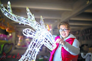 如今,節(jié)能燈、LED燈泡慢慢流行起來,以前這些燈泡太貴,隨著價(jià)格下降,則越來越普及。為了不斷推動(dòng)彩燈行業(yè)的發(fā)展,杜烈生表示,他們一直在嘗試新光源。“正在做的鹿,用的就是星星燈,一閃一閃的,感覺很不同!