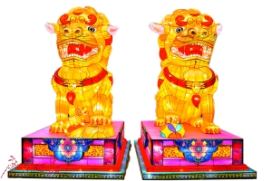 大型燈會(huì)的多彩效果,來自于捫襯布料的五顏六色。幾十種顏色拼起來,好不好看,也是差之毫厘謬之千里的。捫襯時(shí),先將骨架掃上膠水,再力度均勻地將布料捫在骨架上,讓彩燈看起來平滑美觀。