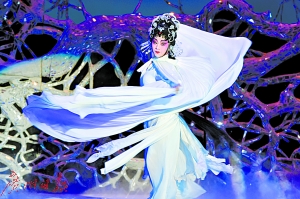 本次戲曲名家特邀展,打頭陣的是由廣東粵劇院副院長、國家一級演員曾小敏領(lǐng)銜主演的新編傳奇粵劇《白蛇傳·情》。該劇在傳統(tǒng)劇目《白蛇傳》的基礎(chǔ)上進(jìn)行了創(chuàng)新和發(fā)展,以“情”為主線,選取了“西湖初見定情”“端午雄黃驚情”“盜仙草求情”“水漫金山傷情”“斷橋續(xù)情”“雷峰塔未了情”等片段,通過匠心獨(dú)具的藝術(shù)手法,讓粵劇與交響樂、舞蹈完美融合,給人青春靚麗、浪漫唯美的藝術(shù)享受。該劇舞美設(shè)計(jì)簡練立體,運(yùn)用舞臺設(shè)備使整個(gè)平臺呈現(xiàn)立體升降、旋轉(zhuǎn),并充分運(yùn)用平臺空間營造出不同的效果,給人以清新雋永的感覺,貼合現(xiàn)代年輕人的審美需求。曾小敏能文能武的精彩演出贏得贊譽(yù)無數(shù)。