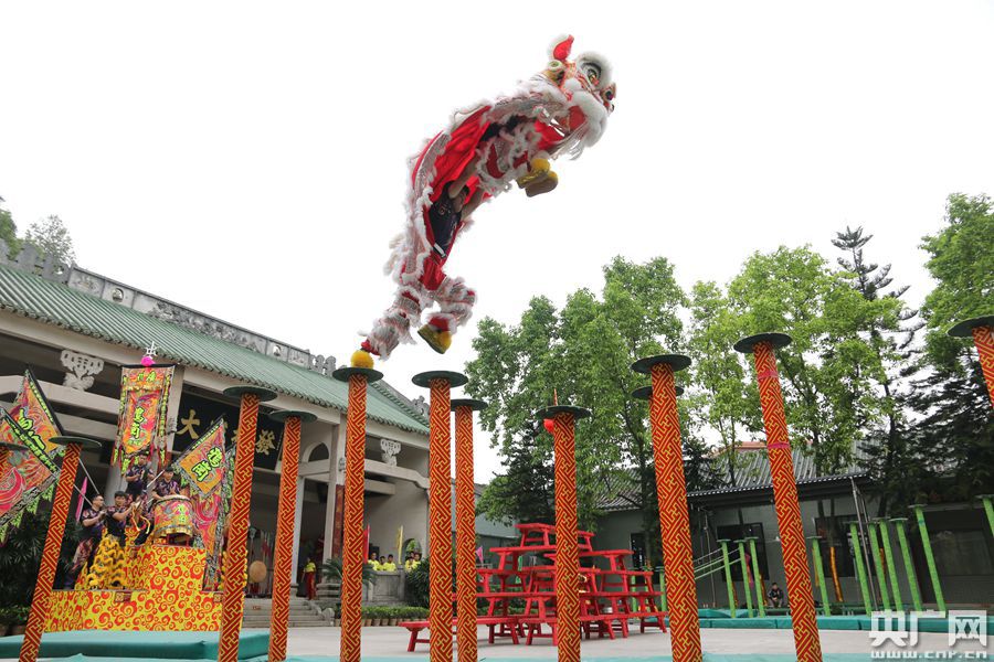 央廣網(wǎng)佛山4月11日消息(記者何偉奇)擂臺起,戰(zhàn)鼓響!在近3米高的梅花樁上,一頭靈動的醒獅踏著鼓點時而駐足,時而凌空一躍,時而轉(zhuǎn)身擺尾……一系列高難度的動作贏得現(xiàn)場觀眾一陣陣的歡呼聲!
