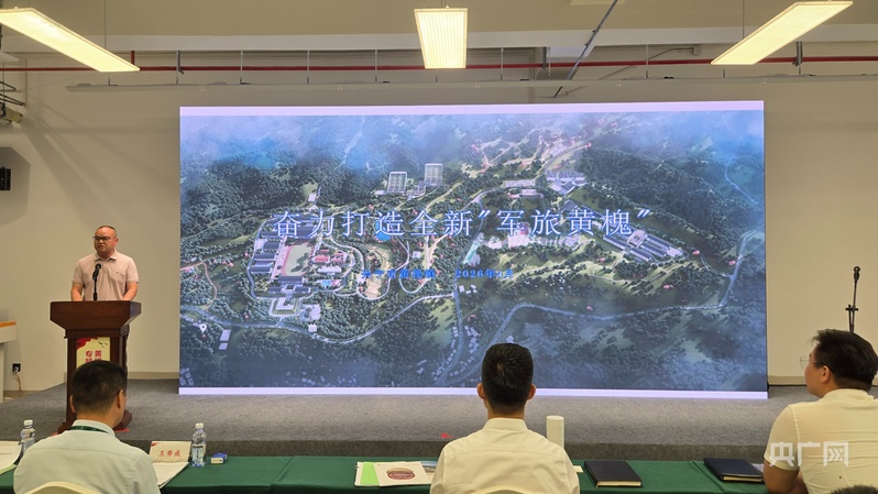 黃槐鎮(zhèn)黨委書記黃勇華同志介紹軍旅特色小鎮(zhèn)規(guī)劃建設(shè)情況及產(chǎn)業(yè)導(dǎo)入需求(央廣網(wǎng)發(fā) 主辦方供圖)