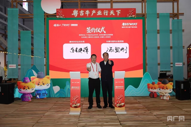 企業(yè)層面,潮州廣濟農(nóng)業(yè)投資發(fā)展集團有限公司與長春城開吉牛發(fā)展有限公司、潮州市兄弟餐飲管理有限公司與吉林省吉運農(nóng)牧業(yè)股份有限公司、廣東潮牛商業(yè)有限公司與吉林省長春皓月清真肉業(yè)股份有限公司、廣東潮發(fā)供應(yīng)鏈有限公司與認(rèn)養(yǎng)一頭牛長春食品有限公司分別簽約,合作內(nèi)容覆蓋牛源供應(yīng)、冷鏈物流、產(chǎn)品開發(fā)和品牌合作等多個環(huán)節(jié)。