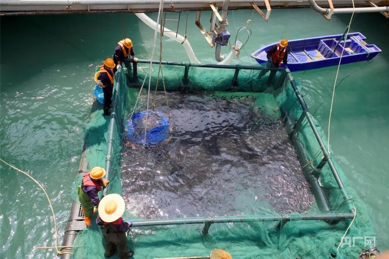 “森海先鋒”號船長張濤介紹,該船在正常海況下每天可完成40次以上全艙水體更換,艙內(nèi)水體透明度可達3米至4米,整體水質(zhì)條件與外部優(yōu)質(zhì)海域保持較高一致性。按照企業(yè)測算,養(yǎng)殖周期約5個月,魚苗成活率超過90%。南澳海域較好的水質(zhì)條件和適宜的溶解氧水平,也為魚類后期生長提供了較為穩(wěn)定的環(huán)境。