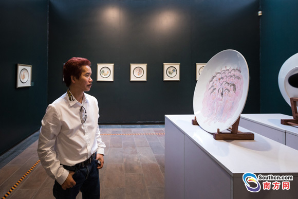 南方網(wǎng)訊 今天(5月10日)上午,由廣州市文廣新局主辦的“彩鴻迭起——許鴻飛瓷碟作品展”在廣州藝術(shù)博物院開幕。這是許鴻飛首次舉辦瓷碟作品展覽,現(xiàn)場共展出108件瓷碟作品。以創(chuàng)作肥女雕塑著稱的許鴻飛,從2015年開始跨界創(chuàng)作瓷碟畫,把有著悠久歷史的瓷碟畫演繹出了當(dāng)代藝術(shù)形態(tài)。