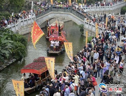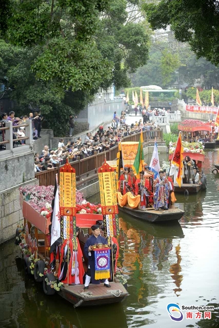 據(jù)南方網(wǎng)報道,北帝出巡、群獅拜壽,再加上八仙、粵劇、婚慶、漢服等方隊助陣。3月30日(農(nóng)歷三月初三),“三月三·荔枝灣”北帝誕系列活動在第二日迎來活動高潮——仁威廟北帝巡游。今年北帝巡游還將北帝請到水上,展開了水陸兩條巡游線路,真正體現(xiàn)北帝主水,風調(diào)雨順的美好祝福。