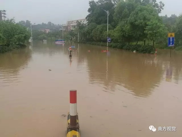中山大道師大暨大公交車(chē)站出,積水太深,過(guò)往車(chē)輛無(wú)法前行。