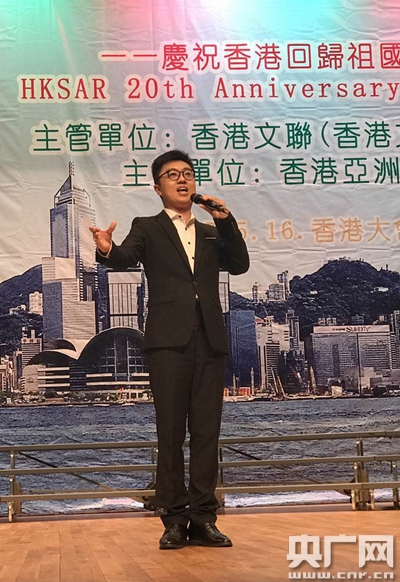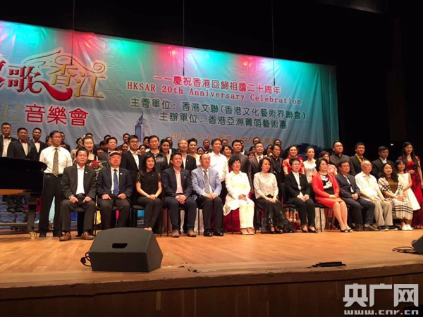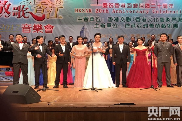 央廣網(wǎng)香港5月18日消息(記者劉志宏 周偉琪 張磊)“2017放歌香江音樂會(huì)---慶祝香港回歸祖國二十周年”于2017年5月16日晚在香港大會(huì)堂音樂廳成功舉行。這是一臺(tái)凝聚福建、南京、深圳、香港文藝界精英的表演會(huì)。香港政協(xié)青年聯(lián)會(huì)副主席蔡曜陽聲情并茂地致開幕詞!香港文聯(lián)主席蔡麗雙博士作詞,國務(wù)院特貼專家、文化部優(yōu)秀專家吳少雄作曲的《我愛東方之珠》(首唱);蔡麗雙作詞、曾多次擔(dān)任中央電視臺(tái)春節(jié)晚會(huì)的國家頂級(jí)作曲家陶思耀作曲的《香江情 壯麗中國夢》,由「泉州市嗓音藝術(shù)學(xué)會(huì)」的五十多位男女團(tuán)員唱出香港人愛國愛港的心聲。