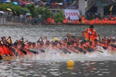 看點:兩年一屆的番禺龍舟賽今年如約在市橋河上舉行。2017年廣州市番禺區(qū)第十六屆蓮花杯、禺山杯龍舟賽暨彩龍競艷活動將在5月28日(農(nóng)歷五月初三)舉行,獎金共計79.2萬元。番禺區(qū)文廣新局局長何穗鴻介紹,今年番禺龍舟競賽時間從往年的端午節(jié)當日改為小長假第一天舉行,方便市民觀賽。往年比賽地點在市橋河西麗橋以東河段,今年改為在德興橋以東河段。三大競賽項目包括傳統(tǒng)龍舟600米×2(折回)競速賽、標準龍舟600米×2(折回)競速賽、彩龍1000米×2(折回)競艷賽。今年比賽地點河面更寬,寬度從原來的90米變成了180米,賽道從4條增加到6條,屆時河道上將迎來102艘龍舟爭渡,運動員達8000人
