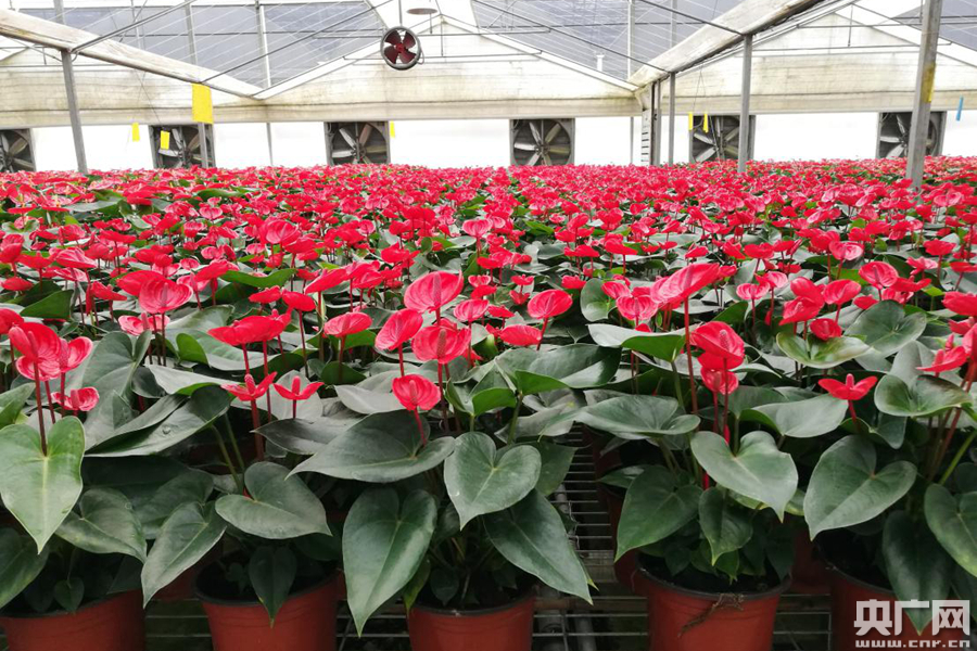 紅掌系列新品種盆花標(biāo)準(zhǔn)化生產(chǎn)示范展示(央廣網(wǎng)發(fā) 穗農(nóng)宣供圖)