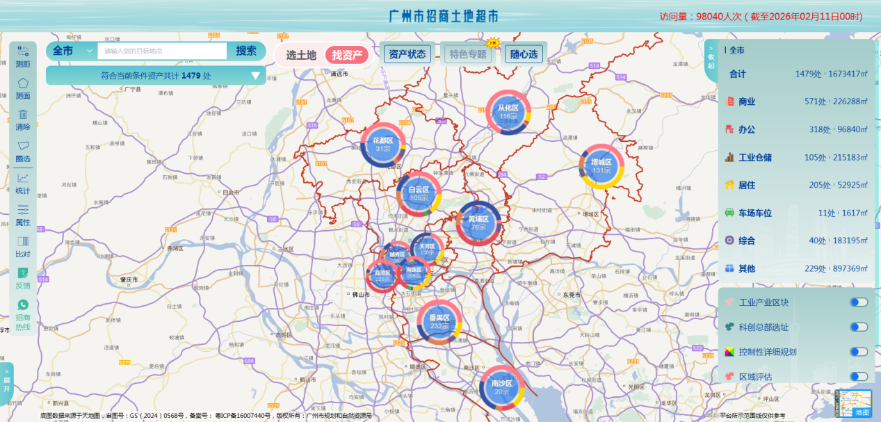 廣州市招商土地超市首次上線1479處可招商資產(chǎn),突破性拓寬可招商空間資源類型,實(shí)現(xiàn)從“選土地”到“找資產(chǎn)”的跨越式升級(jí),實(shí)現(xiàn)可招商空間資源要素全覆蓋。企業(yè)在土地超市平臺(tái),既能精準(zhǔn)尋覓可招商建設(shè)用地,又能便捷匹配待招商的已建成空間,實(shí)現(xiàn)各類資源“一站配齊”,有效破解招商空間資源分散、企業(yè)搜尋成本高的難題,讓招商資源供給更全面、企業(yè)選址選擇更多元。