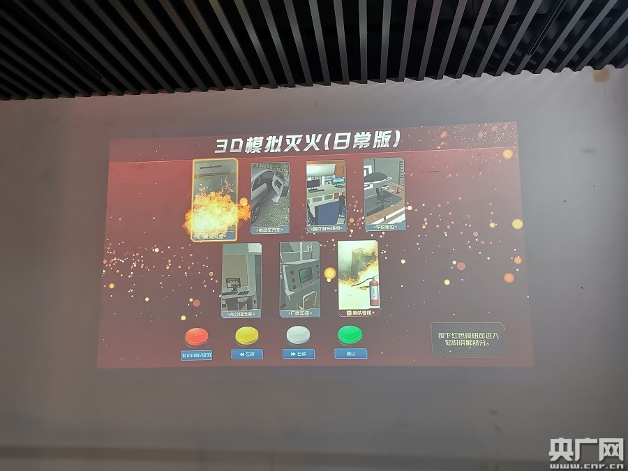 深圳南山安全教育體驗館內(nèi)的3D模擬滅火。(央廣網(wǎng)記者夏燕 攝)