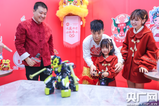 親子家庭體驗(yàn)醒獅機(jī)器人。(央廣網(wǎng)發(fā) 主辦方 供圖)