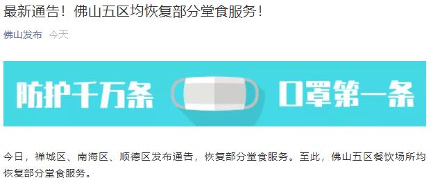 廣東佛山五區(qū)均恢復(fù)部分堂食服務(wù)