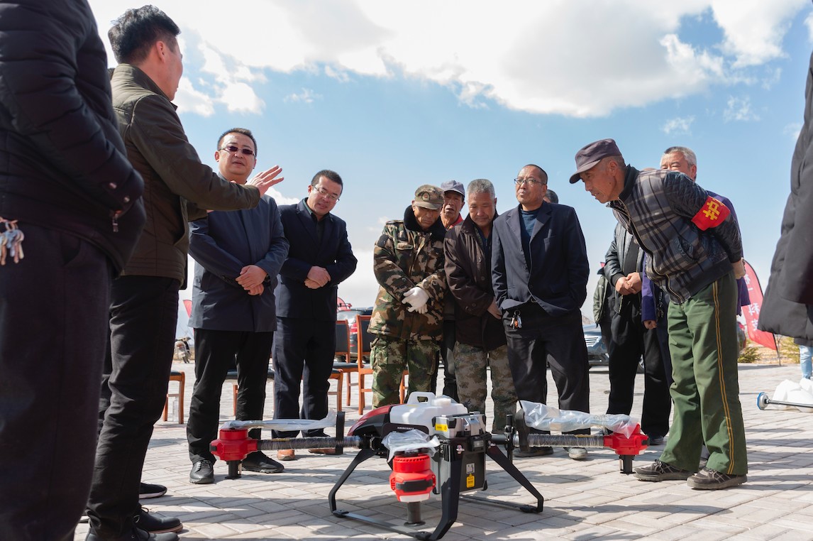 2020年4月,廣州極飛科技有限公司在四川紅原縣海拔3600米的若爾蓋草原上,發(fā)布了無人機(jī)智能播撒系統(tǒng)。為完成萬畝草原播種作業(yè),加快草原生態(tài)恢復(fù),幫助當(dāng)?shù)啬撩駝?chuàng)收、增收,實(shí)現(xiàn)生態(tài)保護(hù)與精準(zhǔn)扶貧雙贏發(fā)展,極飛科技聯(lián)合紅原縣政府,成立了首支藏民飛防隊(duì),并捐贈(zèng)了2臺(tái)極飛農(nóng)業(yè)無人機(jī)智能播撒系統(tǒng)。