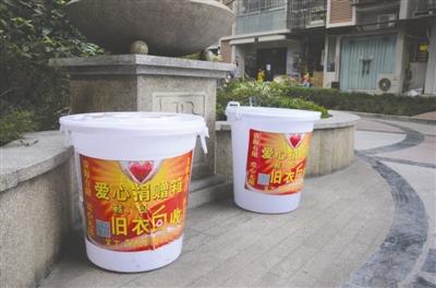 和廣匯城市花園小區(qū)一樣,內(nèi)江城區(qū)長富名苑、江城花園、上上東方、漢安國際、海棠雅居等不少小區(qū)都陸續(xù)出現(xiàn)了以“愛心捐贈”為名的舊衣回收箱!坝袝r每天一桶,那些人每天都開個面包車來把舊衣服收走,有時一天幾個小區(qū)就能拉一車。”一小區(qū)保安說。