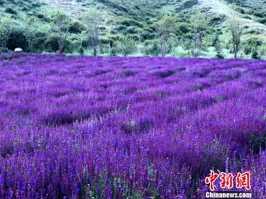 圖為距離青海省會西寧市51公里的青海省大通回族土族自治縣朔北藏族自治鄉(xiāng)邊麻溝村的花海農(nóng)莊里盛開的薰衣草。(資料圖) 孫!z