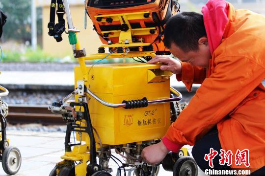該工區(qū)的職工每月要覆蓋探傷檢查近百公里的線路!∴w倔林 攝
