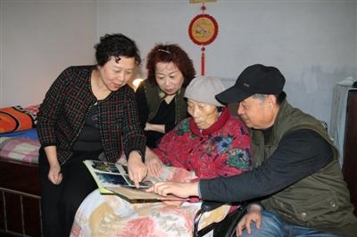 大兒子、三女兒和幺女 陪老人一起看以前的照片