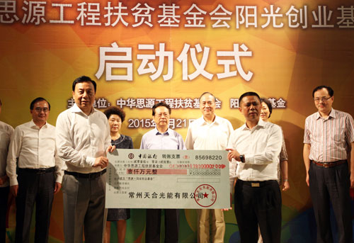 天合光能集團向中華思源工程扶貧基金會捐資1000萬元設立陽光創(chuàng)業(yè)基金。
