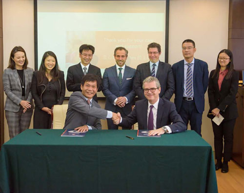 中國(guó)青基會(huì)副理事長(zhǎng)、秘書長(zhǎng)涂猛與INDITEX主席、首席執(zhí)行官帕布羅·伊斯拉先生簽署捐贈(zèng)協(xié)議。