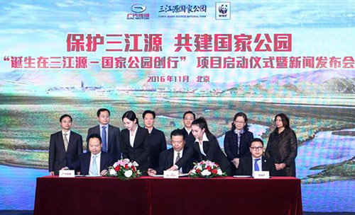 11月2日,由三江源國家公園管理局(后簡稱:三江源管理局)、世界自然基金會(后簡稱:WWF)、廣汽傳祺聯(lián)合主辦的“誕生在三江源-國家公園創(chuàng)行”項(xiàng)目啟動儀式暨新聞發(fā)布會在北京會議中心隆重召開。青海省委常委、省委改革辦主任馬順清,中國環(huán)境與發(fā)展國際合作委員會副秘書長徐慶華,三江源管理局黨委書記、局長李曉南,WWF中國總干事盧思騁,廣汽集團(tuán)執(zhí)行委員會副主任、廣汽乘用車總經(jīng)理郁俊,國家林業(yè)局保護(hù)司司長張希武,國家發(fā)改委農(nóng)經(jīng)司副司長方言,國務(wù)院發(fā)展研究中心研究員蘇楊,廣汽乘用車副總經(jīng)理梁偉彪,WWF總部籌資執(zhí)行總監(jiān)Carol Monoyios等領(lǐng)導(dǎo)出席。此外還有來自國家環(huán)保部、水利部等機(jī)構(gòu)領(lǐng)導(dǎo)和專家,國際組織代表以及媒體代表共同見證了此次活動。