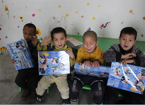 阿熱買里村雙語幼兒園小朋友收到慰問組帶去的禮物