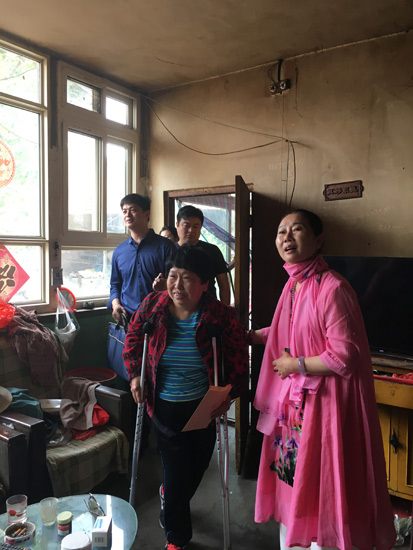中華慈善總會貧困母親救助負責人李風亞、項目執(zhí)行主任冰華、楊勇等一行到興壽鎮(zhèn)桃林村貧困母親張桂紅(化名)家中了解情況(攝影 蘇紅)