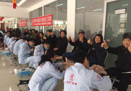 在大連光榮院,高廣東義務(wù)為一位77歲的老大爺祛除了甲溝炎的病痛,老人坐在輪椅上,雖然已經(jīng)不能說話,但看到他們就一直流眼淚,不停地朝他們豎大拇指!