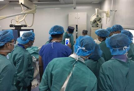 培訓(xùn)交流現(xiàn)場(chǎng),學(xué)員們進(jìn)入導(dǎo)管室現(xiàn)場(chǎng)觀摩和講解原發(fā)性肝癌和結(jié)直腸癌肝轉(zhuǎn)移的載藥微球介入手術(shù)。手術(shù)過程中,郭志教授針對(duì)性地分享了手術(shù)中的重點(diǎn)、難點(diǎn)、容易忽略的細(xì)節(jié)等。