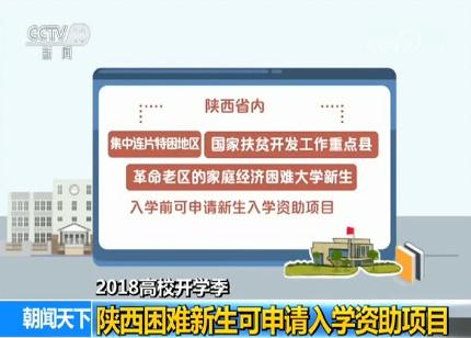 陜西省內(nèi)集中連片特困地區(qū)、國(guó)家扶貧開發(fā)工作重點(diǎn)縣、革命老區(qū)的家庭經(jīng)濟(jì)困難大學(xué)新生,入學(xué)前可申請(qǐng)新生入學(xué)資助項(xiàng)目。就讀本省院校的每人500元,就讀省外院校的每人1000元。同時(shí),在陜西省地方高校就讀的建檔立卡家庭的大學(xué)本?茖W(xué)生,每人每年還可領(lǐng)取6000元的助學(xué)金生活補(bǔ)助。