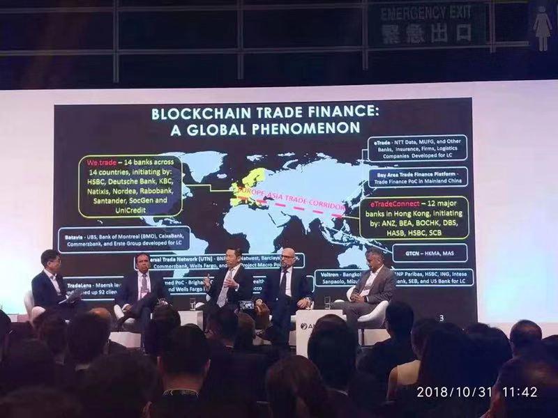 金管局在當(dāng)日舉行的香港金融科技周開幕儀式上,宣布貿(mào)易聯(lián)動(eTradeConnect)正式推出,目前該網(wǎng)絡(luò)上有12家銀行通過區(qū)塊鏈技術(shù)與其部分貿(mào)易融資試點客戶實現(xiàn)貿(mào)易信息共享。