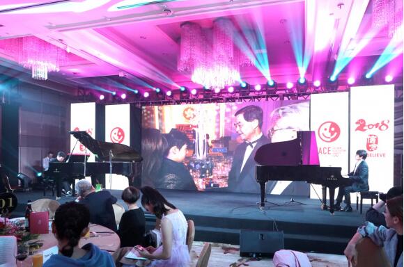 在此次慈善晚宴上,雅馬哈樂器音響(中國)投資有限公司,支持了兩架鋼琴,為這場2018FACE第14周年慈善晚宴助力!我國青年鋼琴演奏家、“雅馬哈藝術(shù)家”宋思衡也來到了現(xiàn)場。宋思衡在獨(dú)奏《土耳其進(jìn)行曲》之后與同樣被雅馬哈授予“雅馬哈未來藝術(shù)家”的劉明康為大家表演鋼琴合奏《夢中的婚禮》《羅密歐與朱麗葉》。在這個(gè)匯集中外名流、高朋滿座的宴會(huì)廳里,劉明康駕馭這臺(tái)鋼琴“大殺器”得心應(yīng)手,悠揚(yáng)的旋律如潮水般噴涌而出,把聽眾帶領(lǐng)到他那多彩的世界。這兩位“雅馬哈藝術(shù)家”用靈巧的雙手把悠揚(yáng)的旋律印刻在每一位嘉賓的心中。