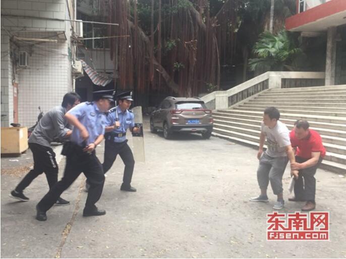 攝制組情景再現(xiàn)周萬勇當年見義勇為事跡,圖為模擬現(xiàn)場。東南網(wǎng)記者 林杰 攝